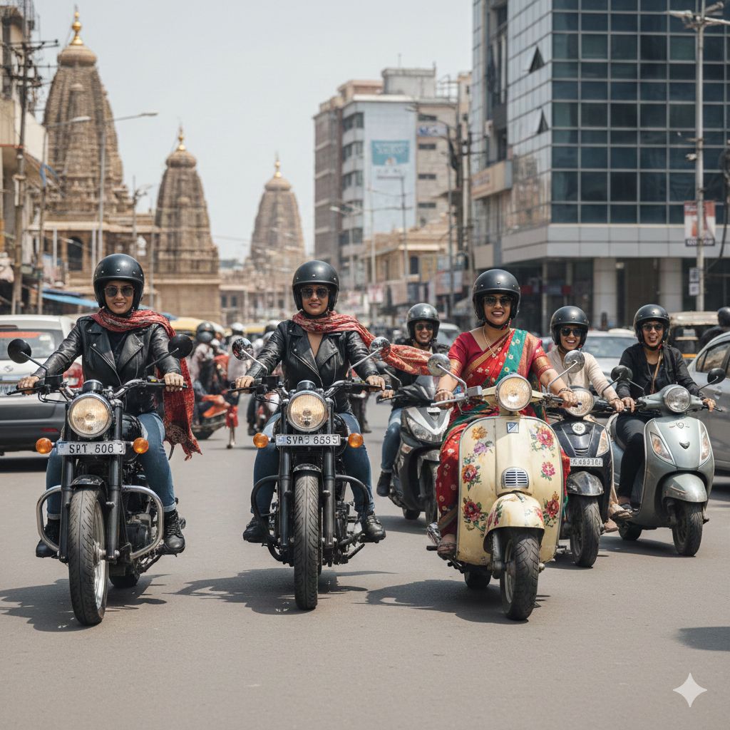 While traveling beyond my city and cruising on the smooth new roads which have mushroomed across the country, I noticed the increase in motorcycles plying on these roads. By their attire, the bags loaded along with women pillion riders, who mostly sat cross-legged, it was clear they were going about routine business rather than an exotic holiday.